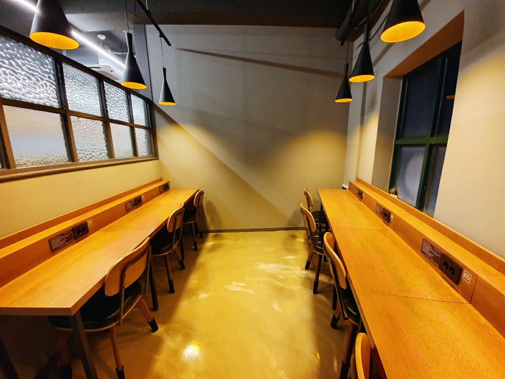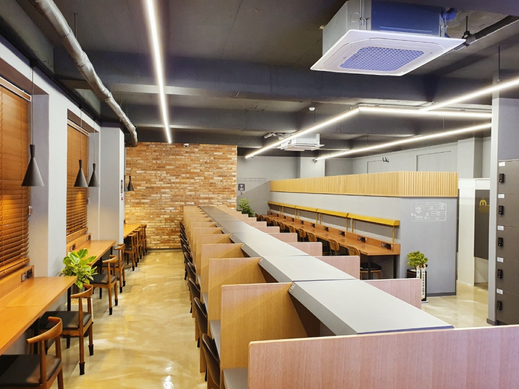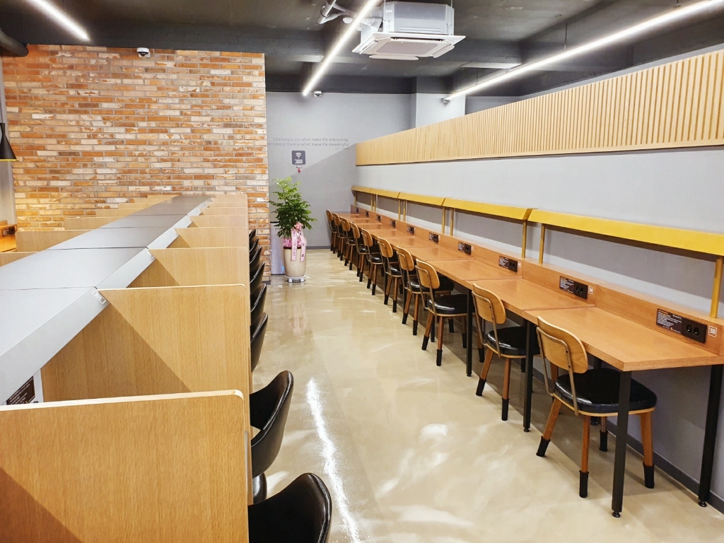 60평의 공간에는 70석의 다양한 1인석이 있습니다.