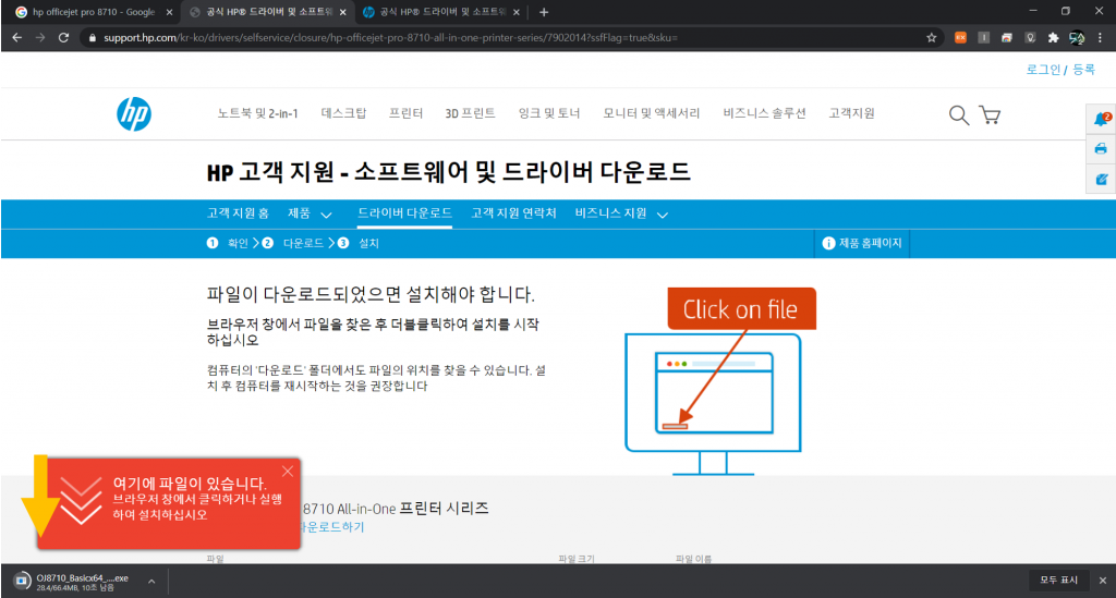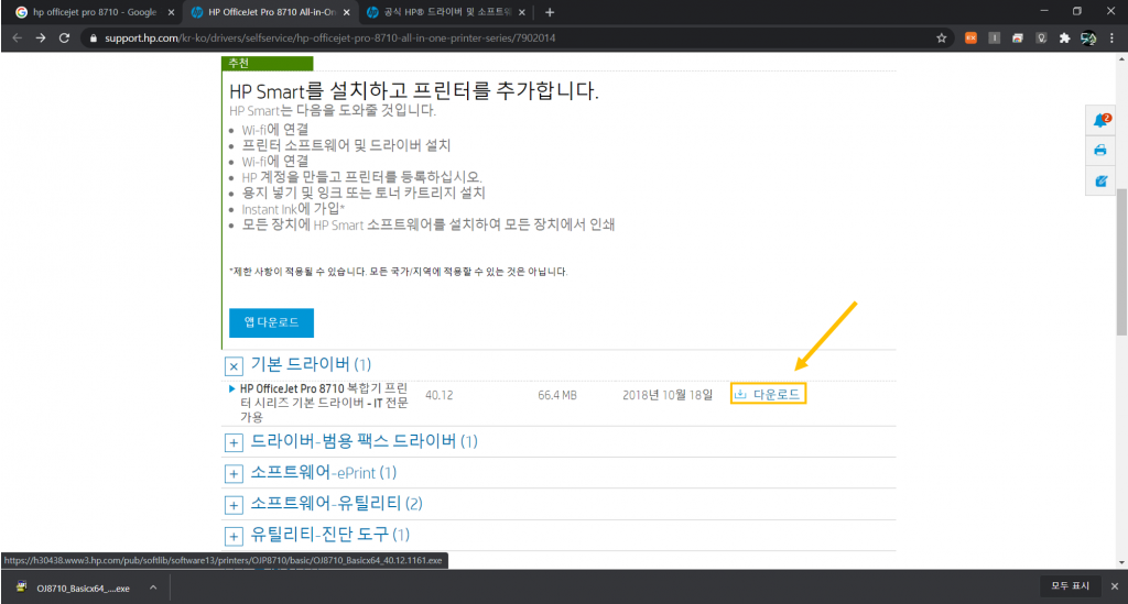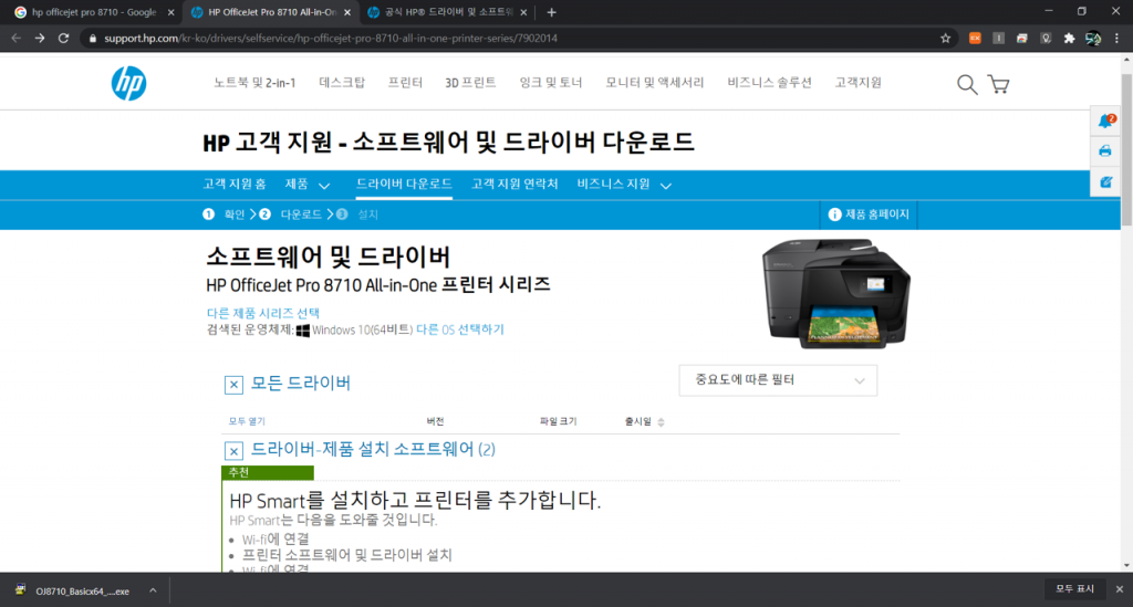우선 구글에 "HP Officejet Pro 8710"을 검색해주세요. 그리고 맨 위의 페이지에 들어갑니다!