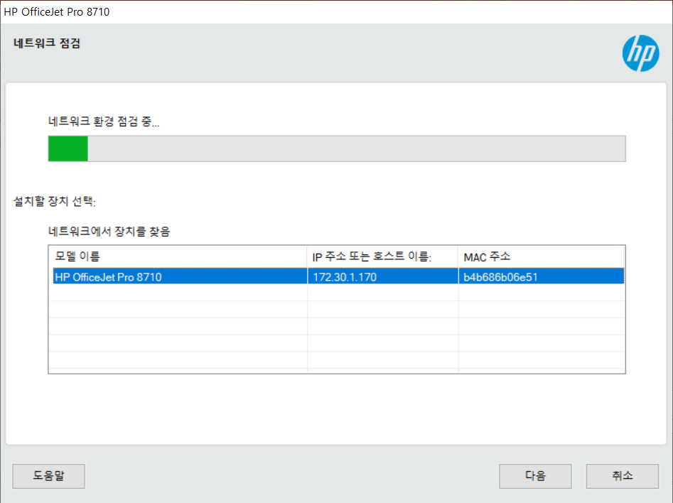 와이파이를 올바르게 연결했다면, 프린터가 아래와같이 나옵니다! 프린터를 선택한 후 다음으로 넘어갑니다.