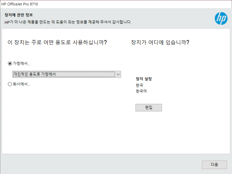 크게 신경쓰시지 않아도 되는 파트입니다! 가정에서, 개인적인 용도로 선택하고 넘어갑니다!